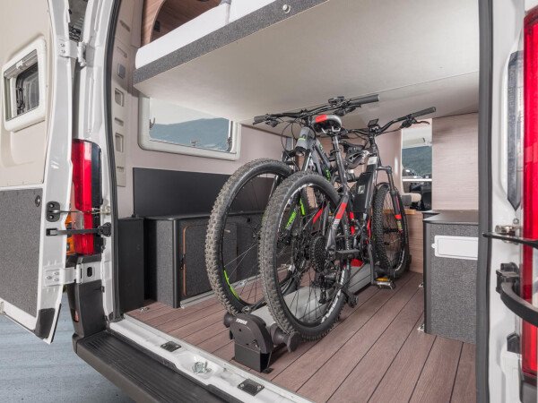 Ausstellbare Isolierfenster und Dachhauben mit Verdunklungsrollo und Moskitoschutz, Insektenschutztür, elektr. Eingangsstufe, zusätzliches Dachfenster im Fronbereiches des Daches, CP-Plus Bedienteil für Bordelektronik, Trumatic Dieselheizung inkl. Boiler und Umluftanlage Aufbau. Zahlreiche Staufächer, Ladefläche ausreichend für Gepäck und zwei Fahrräder