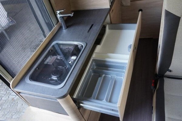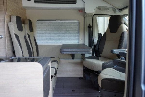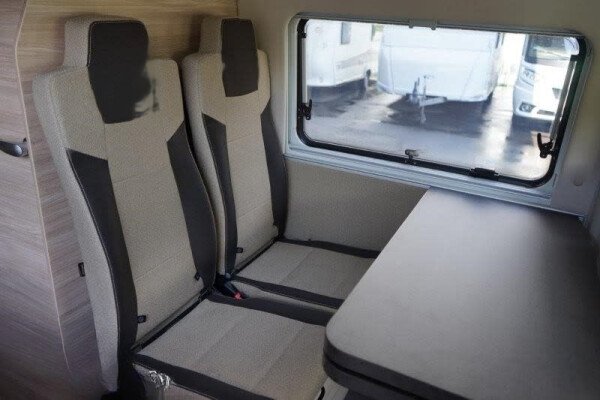 4 Schlafplätze, Doppelquerbett im Heck und Doppellängsbetten als Hubbett in Fahrtrichtung. Sitzbank-Verbreiterung durch Seitenauszug, auch während der Fahrt, inkl. ISOFIX. Tisch inkl. Tischerweiterung, Bord-Control, TRUMA Heizung inkl. Warmwasserboiler, Bad mit drehbarer Kassetten-Toilette, 2-Gasflammkocher mit Glasabdeckung, separater Spüle mit Abdeckung und Arbeitsplatte, 90-Liter-CUV-Kompressorkühlschrank inkl. 7,5 L Gefrierfach mit Nachtabsenkung und Silent-Modus, Insektenschutz-Schiebetür, Fahrradhalter für 2 Räder, Markise, u.v.m…
