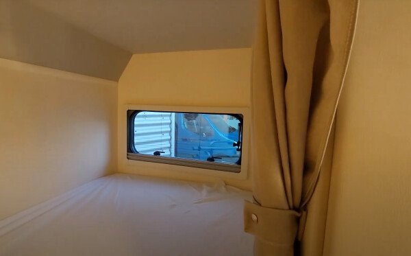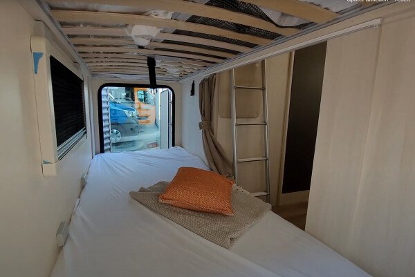 ✅ Schlafmöglichkeiten: Doppelbett im Alkoven, Stockbetten + umbaubare Sitzecke