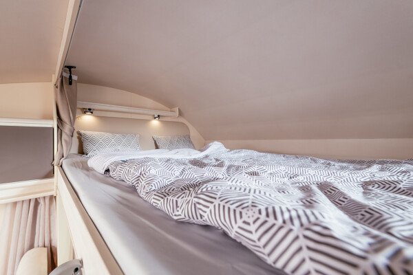 Geschirr, Campingmöbel & Bettwäsche sind an Bord.